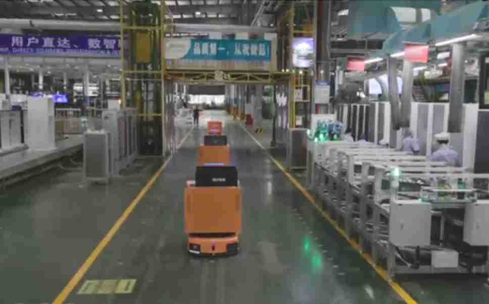 为车载冰箱物流配送打造的智能解决方案,,包含产中物流通过潜伏举升AMR搬运至线边,,产后成品物流智能仓储,,流程包含产中物流智能齐套入库,,线边安灯叫料AMR智能配送至线边,,,成品入库、、、、出库,,,通过无人堆高车机器人,,智能仓储管理替代人工作业管理,,,,实现更高存储、、、、更高效率、、、、更具柔性化的解决方案。。