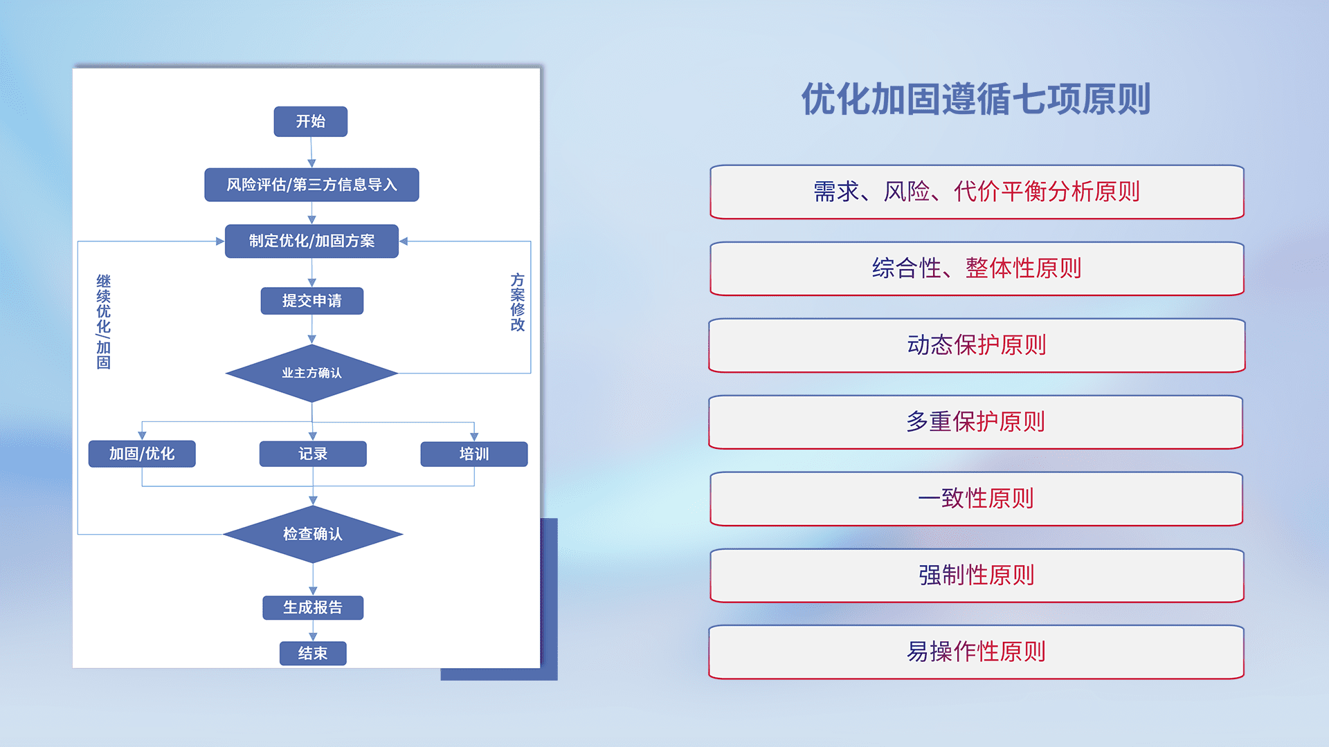 最大程度利用现有资产,,,,对评估发现的问题进行封堵与整改,,防止漏洞被利用,,,,提升整体网络安全性,,为客户带来高标准的优化加固服务。。